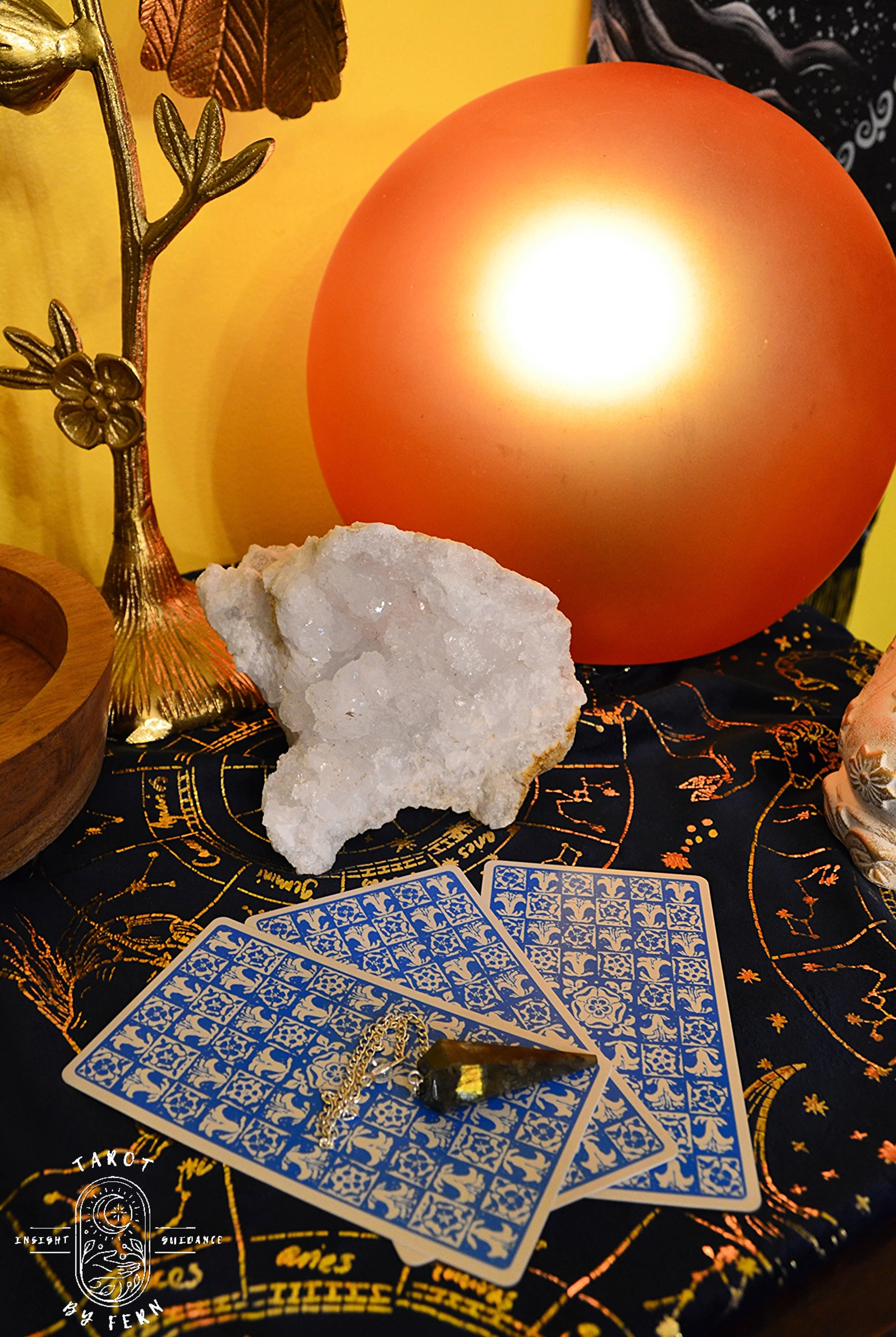 This three-card spread also includes the pendulum: ask it Yes or No questions regarding your reading OR ask it yes or no questions of another desire.